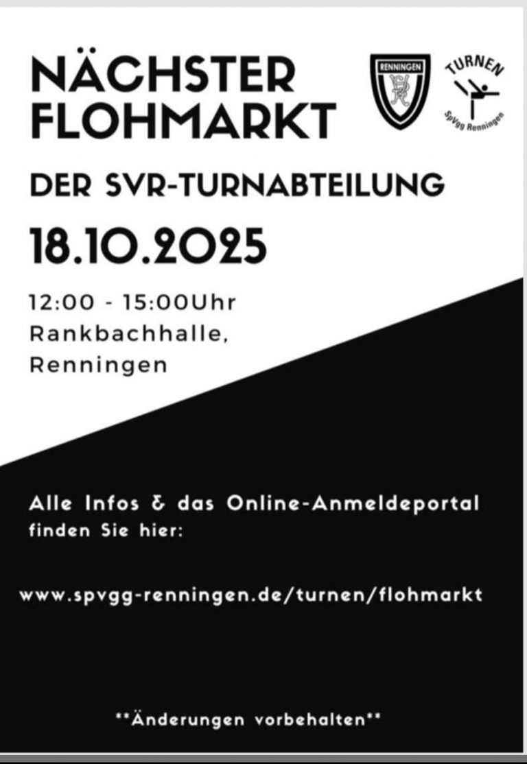 Flohmarkt Renningen 18.10.2025 SAVE THE DATE Am 18.10.2025 sind wir wieder auf dem nächsten Flohmarkt in Renningen, in der Rankbachhalle mit unseren Flohmarktartikeln, vor Ort. Kommt vorbei. Wir freuen uns auf Euch.